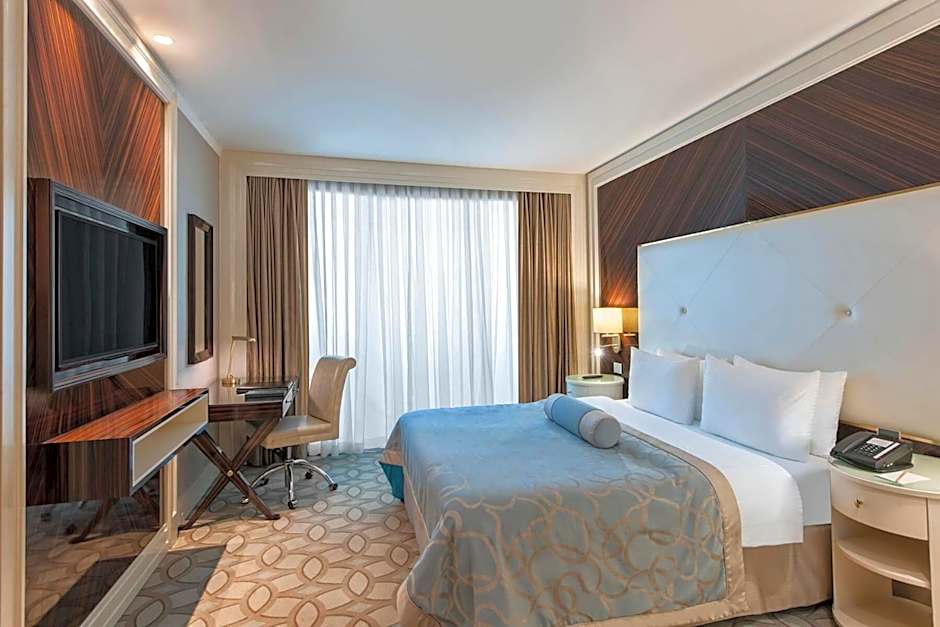 Presidental Suite painted with warm and natural colors feature two separate bedrooms and living rooms, adjustable air-conditioning, a specially equipped direct-dial telephone, hair dryer, bathrobes, a sitting room, complimentary tea and coffee set up, shower bath, Full HD Led Smart TV, mini-bar, safe box, free Wi-Fi, iron, and ironing board.